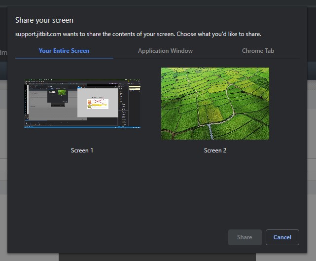 2. You will be prompted if you would like to capture the entire screen or select an application window to record. We recommend recording a particular application to save space and upload time